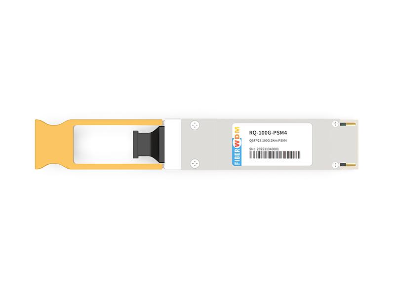 The QSFP28 PSM4 is a Four-Channel, Pluggable, Parallel, Fiber-Optic QSFP28 Transceiver for 100G Ethernet Applications. The QSFP28 full-duplex optical module offers 4 independent transmit and receive channels, each capable of 26Gbps operation for an aggregate data rate of 104Gbps 2km using single mode fiber. These modules are designed to operate over single mode fiber systems using DFB laser array. An optical fiber ribbon cable with an MPO/MTPTM connector can be plugged into the QSFP28 module receptacle. QSFP28 PSM4 is one kind of parallel transceiver which provides increased port density and total system cost savings.