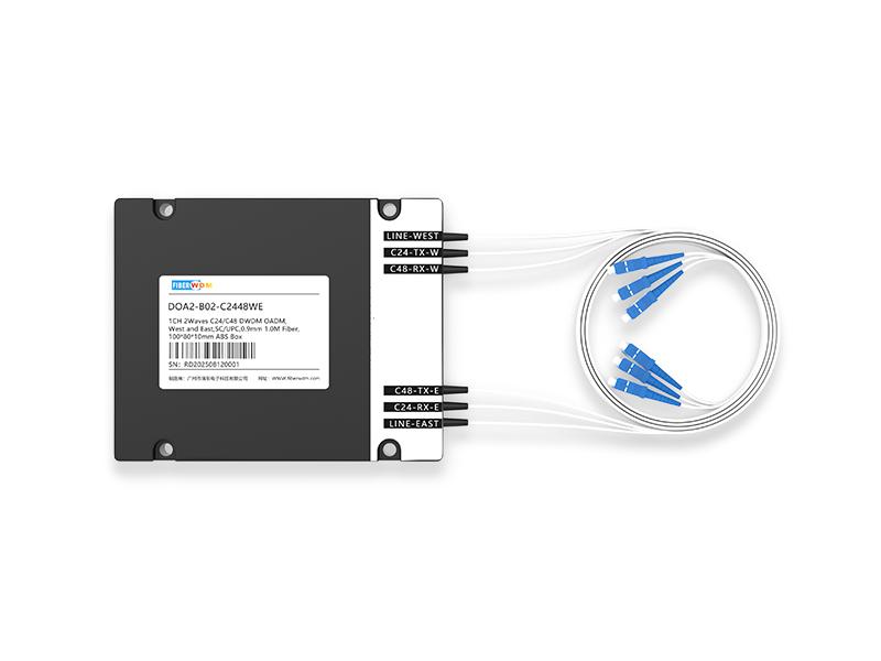Product Specification: 1CH 2Waves C24/C48 DWDM OADM, West and East, SC/UPC, 0.9mm 1.0M Fiber, 100*80*10mm ABS Box