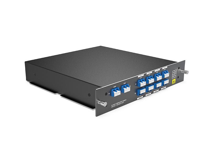 8 Channels O-BAND DWDM MUX DEMUX, supports 8 channels difference business in two optical fiber for point-to-point transmission.