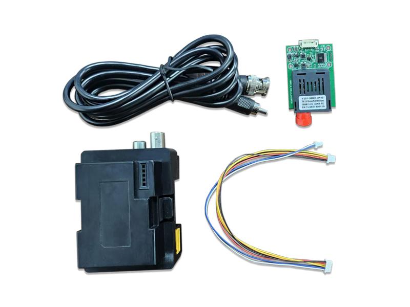 The ground end is directly embedded in the JR compartment of the TX12 remote control. The FC port of the ground end is connected to the optical fiber released from the optical fiber tube. The analog signal interface at the ground end is select based on the actual display device in use, providing a TRRS cable and an RCA-to-BNC adapter cable. The ground end does not require an external power supply. It can directly use power from the remote controller. If the power supply to the remote controller is used, it is necessary to ensure that power supply of the remote controller is sufficient.