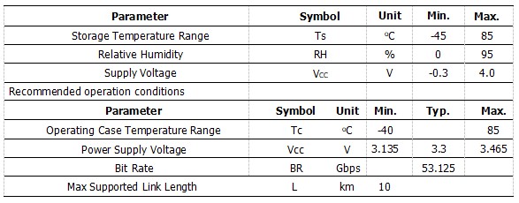 Note: Measured with 26.5625Gbd PAM4, PRBS31Q, ER≥3.5dB, BER<2.4E-4