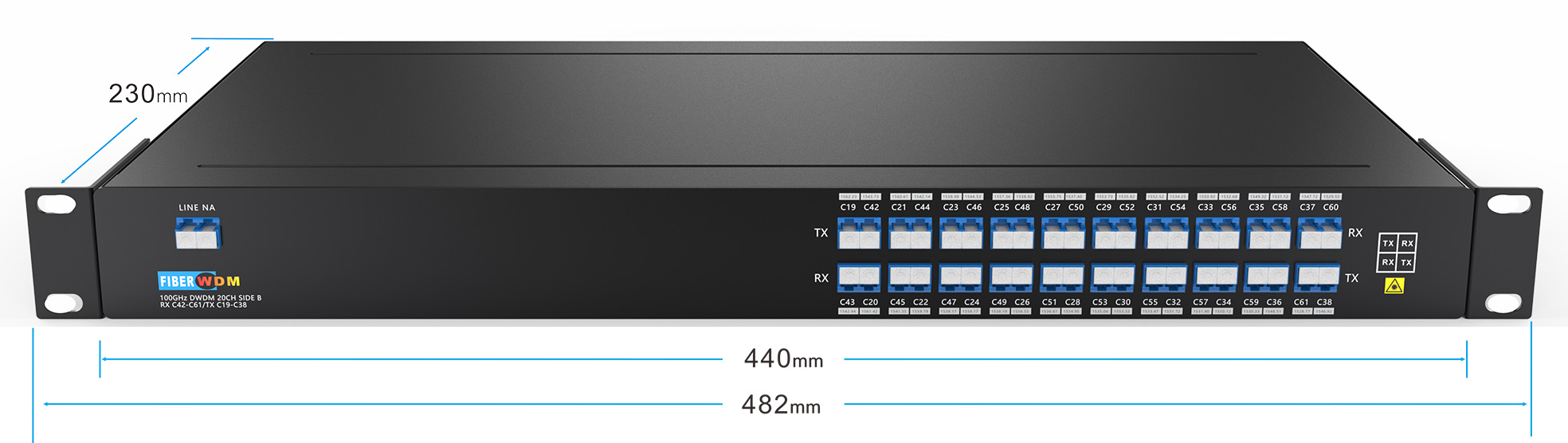 DWDM MUX/ DEMUX 20CH 40 Waves (RX C19-C38/ TX C42-C61) Single fiber, LC/UPC , 1U Rack Side A |