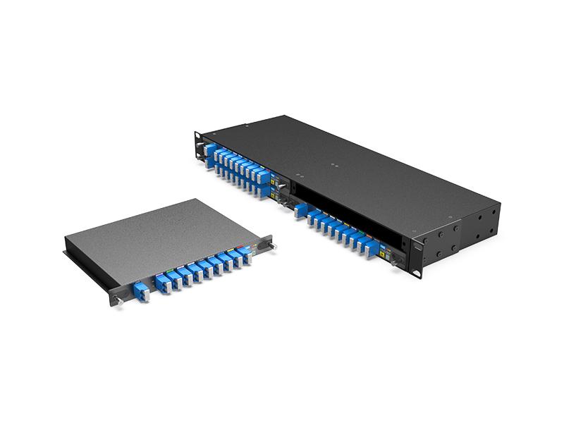 CWDM MUX DEMUX,Multiplexing up to 18 Channels on Fiber Pair 1% Monitor Port for Signal Analyzing or Troubleshooting Passive, Protocol Transparent for Ethernet, FC, OTN, SONET/SDH, etc. Fully Compatible with All ITU-T 1G/10G/25G CWDM Optics Applied to Metro, Regional CWDM Networks